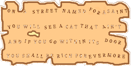 "This place is creepy," whispered Grace. "It sure is. Keep your eyes peeled for 'The Cat That Ain't.' " "That doesn't make any sense to me at all. I think- Willie! Do you see that green car?" "You mean the green car that's been following us ever since we left my house? It's coming towards us." Just then, a green car with darkened windows glided to a halt next to Grace and Willie. They couldn't see who the driver was. The door on the driver's side begin to slowly open, and Flop began to bark furiously. "Willie! Let's get out of here!" yelled Grace. The two frightened children jumped on their bikes and began to pedal as fast as they could, but when Grace looked over her shoulder, she saw that the green car was right behind them." NEXT STORY: "The Cat That Ain't?" |